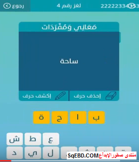 جواب سؤال ساحة من لغز رقم 4 من المجموعة الاولى من لعبة كلمات متقاطعة صقور الإبدآع