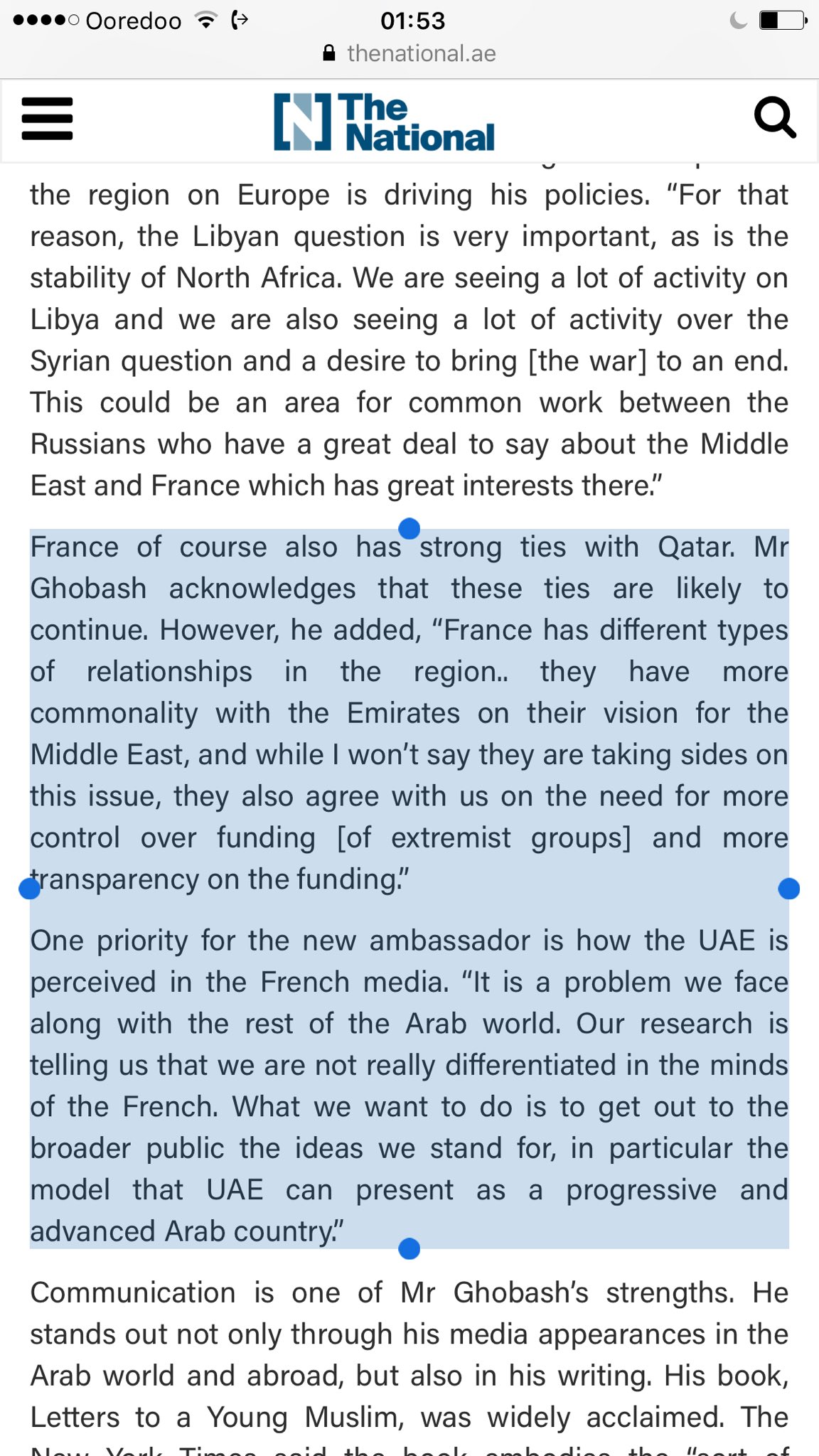 خديجة بن قنة On Twitter السفير الإماراتي الجديد في باريس يعترف بقوة العلاقة بين قطر وفرنسا اعتراف يبر ر على ما يبدو دخول الامارات بحملات إعلامية دعائية في وسائل الاعلام الفرنسية وتحديد أولويات السفير
