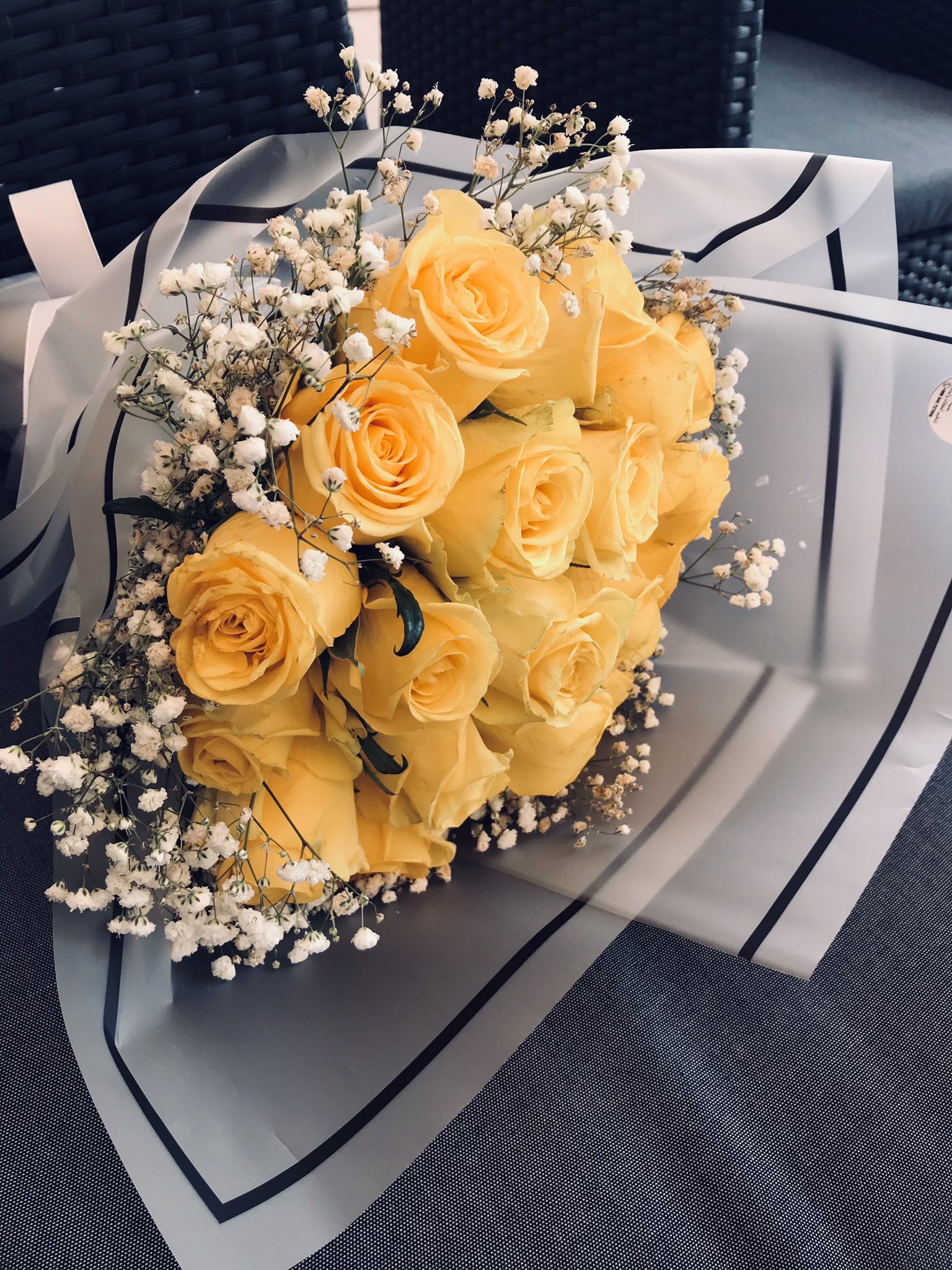 باقة ورد اصفر بتغليف اسود فاخر متجر رائد
