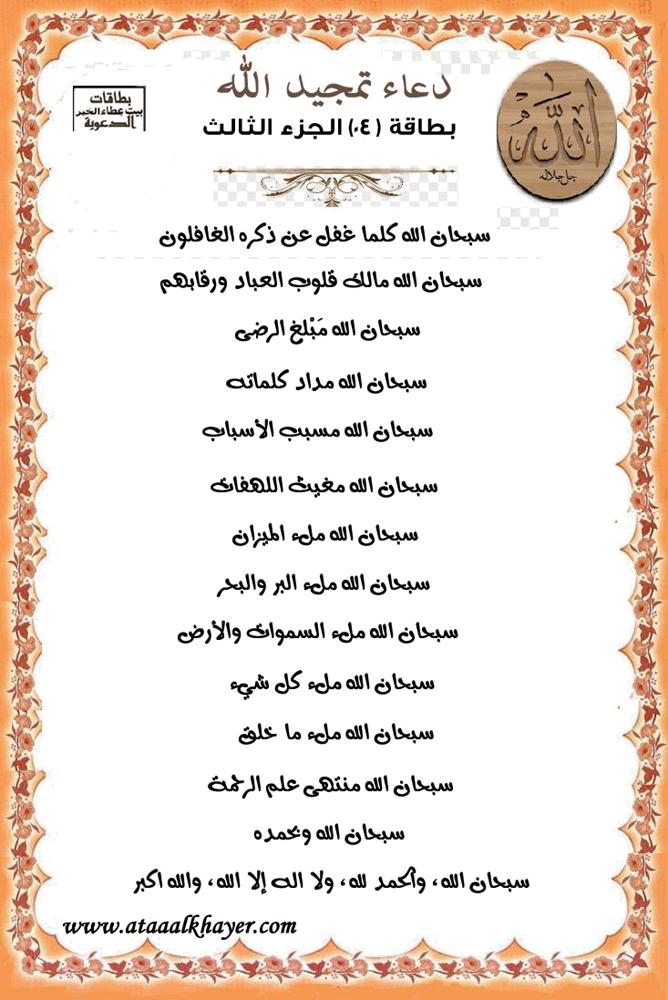 دعاء تمجيد الله بطاقة 04 الجزء الثالث بيت عطاء الخير الاسلامي