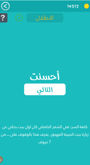 حل في الشعر الجاهلي كان اول بيت يحكي عن زياره بيت الحبيبه المهجور يعرف هذا بالوقوف على من سبعه حروف فى مرحلة من لعبة كلمة السر 2 صقور الإبدآع